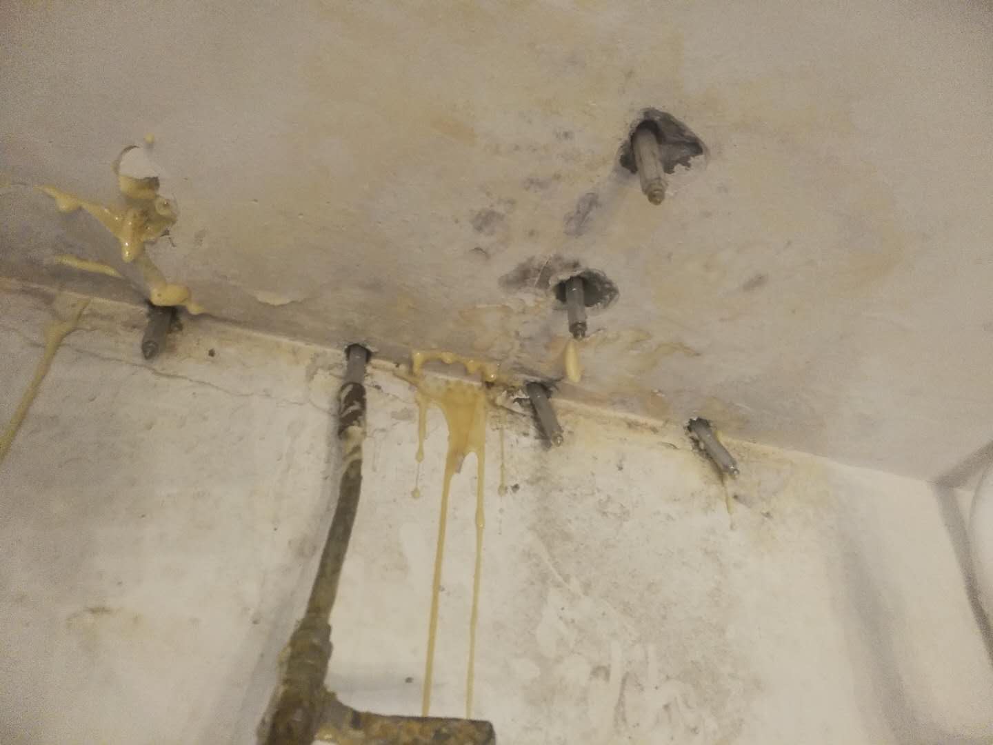 以下是對各具體工序的詳細(xì)梳理: ### 1. 查找裂縫、滲漏點(diǎn) - **裂縫產(chǎn)生原因**:主要源于變形作用,像溫度變形、收縮變形、基礎(chǔ)不均勻沉降變形等多因素。滲漏通常是由混凝土裂縫或混凝土密實(shí)度問題導(dǎo)致。 - **查找方法**:出現(xiàn)滲漏水的地方,其混凝土表面往往附有水堿痕跡,據(jù)此找準(zhǔn)裂縫和滲漏水的具體點(diǎn)位。 ### 2. 鉆機(jī)打孔 - **打孔時機(jī)**:在完成查找裂縫、滲漏點(diǎn)的施工流程后進(jìn)行。 - **打孔要求**:對準(zhǔn)裂縫縫隙以90°垂直混凝土表面打進(jìn)直孔(特殊部位或情況如建筑物陰角部位、施工部位聚集較多鋼筋等,可能改變打孔方法);在裂縫走向每隔15 - 20cm間距布一個鉆孔,孔深度為25 - 40cm(孔深一般不宜小于1/3的建筑物截面深度,不宜大于2/3的建筑物截面深度)。若鉆孔時遇到鋼筋無法達(dá)到要求孔深,宜在旁邊部位補(bǔ)孔。 ### 3. 安裝止水針頭 控制好埋設(shè)針頭的深度(便于后續(xù)敲釘、堵孔、打磨等操作),安裝好注射針頭并擰緊。 ### 4. 檢測灌漿機(jī) - **檢測內(nèi)容**:檢查灌漿機(jī)構(gòu)件、高壓管、牛油頭等是否正常,保證料斗清潔;將灌漿機(jī)通電,用清洗劑進(jìn)行清洗,查看是否存在異常現(xiàn)象。 - **后續(xù)操作**:確保正常后才可進(jìn)入下一道工序。 ### 5. 按比例配漿液 - **配液要求**:認(rèn)真閱讀材料使用說明書,按漿液配比要求進(jìn)行漿液配比(注意用刻度量杯量度,先配甲組份后配乙組份),平穩(wěn)緩慢倒進(jìn)灌漿機(jī)料斗,用木棒緩慢有序攪拌,直至液體色澤均勻、無分層即可進(jìn)行灌漿。 - **注意事項(xiàng)**:根據(jù)現(xiàn)場施工進(jìn)展配漿液,量少次多,避免一次配過多造成浪費(fèi);配好的漿液要在初凝時間內(nèi)完成使用,防止機(jī)器堵塞和漿液浪費(fèi)。 ### 6. 進(jìn)行注漿 - **注漿對接**:用牛油頭對接好止水針頭,開始正常灌漿。 - **灌漿方式**:不宜持久性灌漿,應(yīng)間斷性、有序性、有要求、有標(biāo)準(zhǔn)地施工。首先以不大于400kg/cm³d的低壓進(jìn)行慢灌,然后再以600kg/cm³左右的高壓進(jìn)行滿灌,注漿壓力控制在0.3Mpa。觀察到止水針口附近的混凝土表面出現(xiàn)溢漿即可停止灌注。同時在灌漿過程中要做到眼勤、口勤、手勤,掌握好漿液凝固時間,在有效時間內(nèi)完成所有注漿施工動作,并在初凝時間內(nèi)完成灌注。 ### 7. 清洗注漿機(jī)械 采用優(yōu)質(zhì)的洗滌液清洗,先使用少量洗滌液清洗機(jī)內(nèi)的環(huán)氧,然后進(jìn)行循環(huán)洗滌直至干凈,清洗后將灌漿機(jī)部分卸除保管。 ### 8. 質(zhì)量檢測 過完材料的最終凝固時間,質(zhì)檢人員到現(xiàn)場進(jìn)行質(zhì)量評估。 ### 9. 敲釘、堵孔、打磨、恢復(fù)原狀 灌漿后,待縫內(nèi)漿液不外流且完全凝固,拔卸灌漿嘴,使用環(huán)氧樹脂砂漿對灌漿孔封孔,抹平修復(fù)裂縫表面,再根據(jù)現(xiàn)場施工要求進(jìn)行打磨修復(fù)。 ### 10. 驗(yàn)收、撤場 - **驗(yàn)收工作**:通知報(bào)驗(yàn),組織甲方人員、乙方人員驗(yàn)收計(jì)量。 - **撤場工作**:清理施工現(xiàn)場,做好撤場相關(guān)事宜。